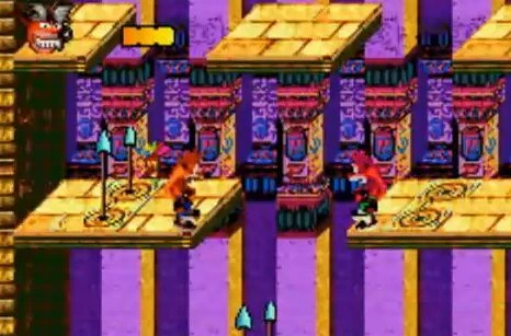 Cette zone égyptienne a des lances piquantes jaillissant du sol, comme dans les niveaux du décor. Crash doit faire en sorte que son double les touche au moment où elles sortent d'un seul côté et répéter le processus trois fois sur des étages différents pour lui redonner ses esprits.