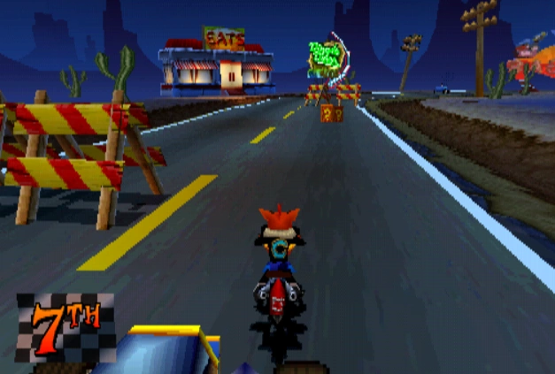 Crash se retrouve sur sa moto sur une route de nuit. Il doit alors piloter une course contre des automobilistes et arriver premier pour avoir un Cristal.