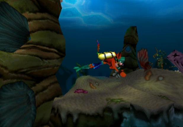 Le niveau se situe sous l'eau. Crash doit nager le long du niveau en évitant les ennemis et les obstacles tels que des mines. Il peut être aidé par un appareil lance-torpille qui peut lui permettre de briser des caisses bloquées par du corail.